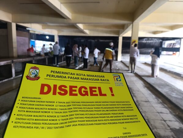 Penakaminews- Sebanyak 695 kios atau lods di Pasar Terong, Makassar, resmi disegel oleh tim gabungan dari Perumda Pasar Makassar Raya. Langkah ini diambil setelah sejumlah kios diketahui kosong dan tidak lagi beroperasi, sementara sebagian lainnya menunggak kewajiban retribusi dalam waktu yang cukup lama.