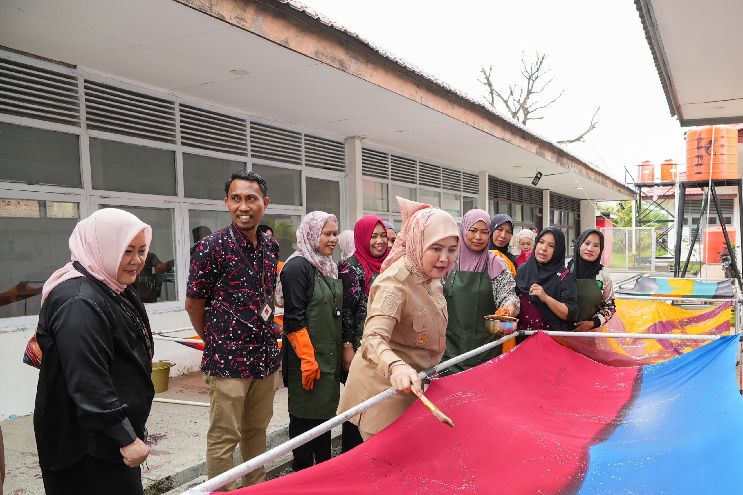 Dalam kesempatan itu, Aliyah Mustika Ilham meninjau langsung kegiatan pelatihan batik ciprat dan menjahit yang diikuti oleh 16 peserta.