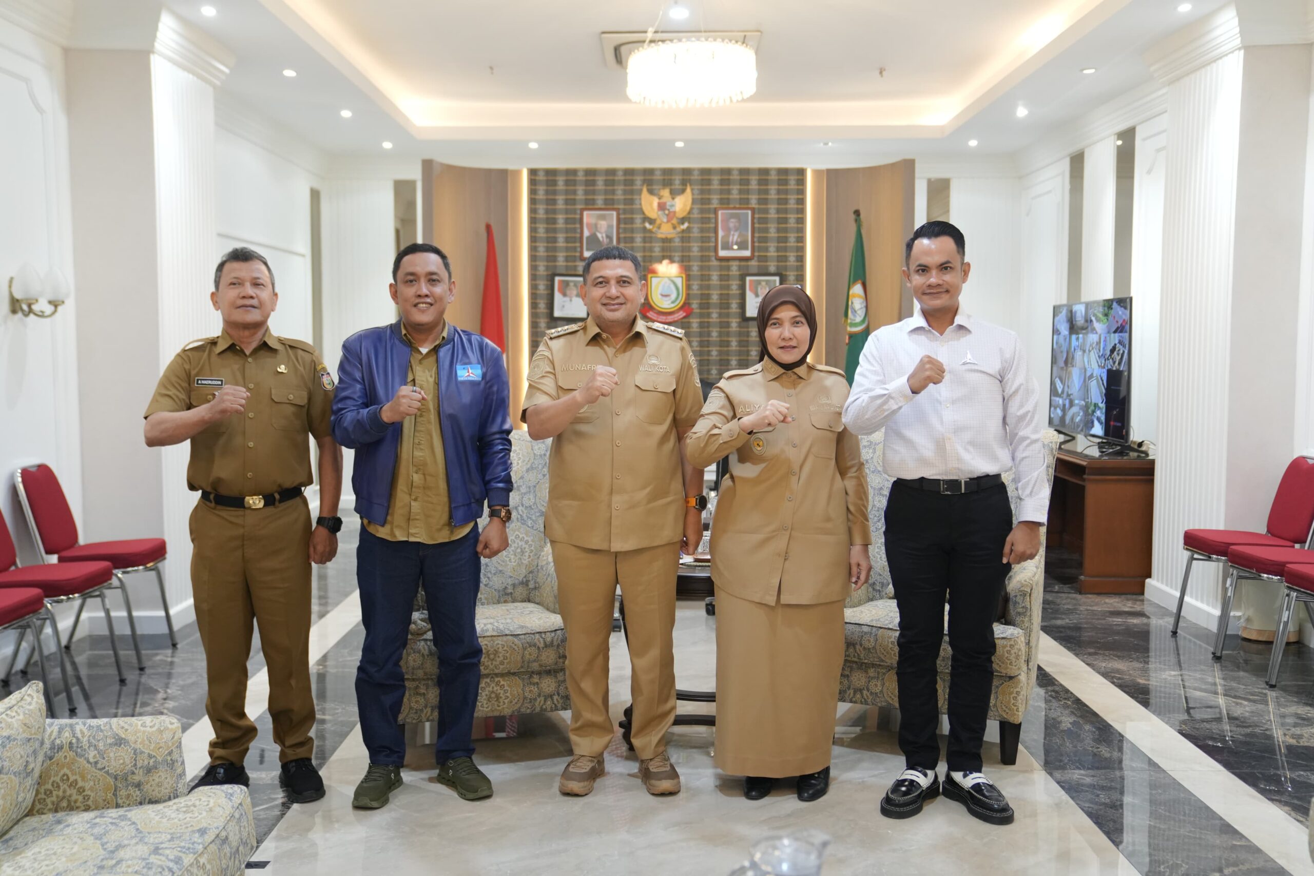 Wali Kota Makassar, Munafri Arifuddin, didampingi Wakil Wali Kota sekaligus Plt. Ketua Demokrat Makassar, Aliyah Mustika Ilham, menerima langsung kedatangan para legislator Demokrat yang dipimpin Ray Suryadi Arsyad dan Tri Sulkarnain Ahmad.